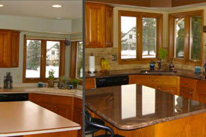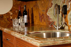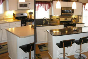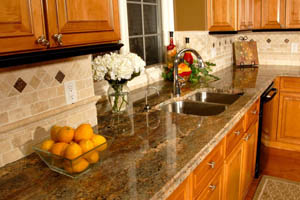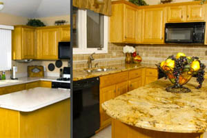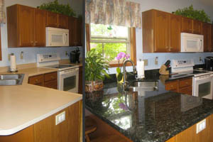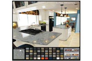 You can select the color of your walls, floors, appliances and cabinets and then change the granite colors to find the granite color you like for YOUR kitchen. Hundreds of slabs available!